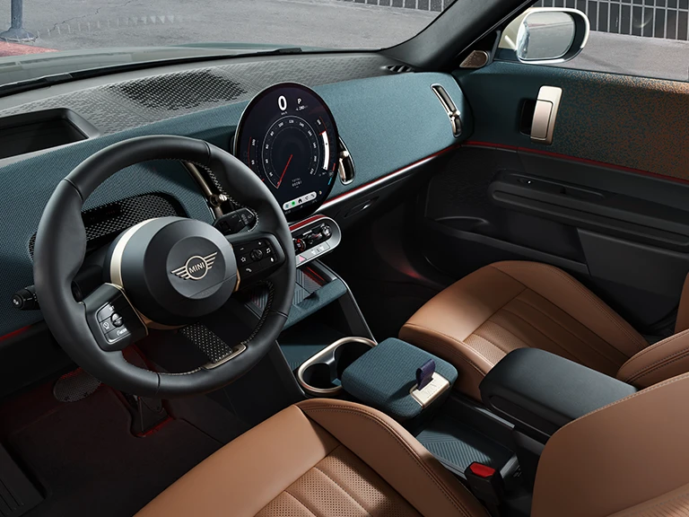 Od revolucionarnega okroglega zaslona do našega prvega inteligentnega osebnega asistenta – električni MINI Countryman je opremljen z napredno tehnologijo, ki vsako vožnjo naredi udobnejšo in bolj povezano kot kdaj koli prej.