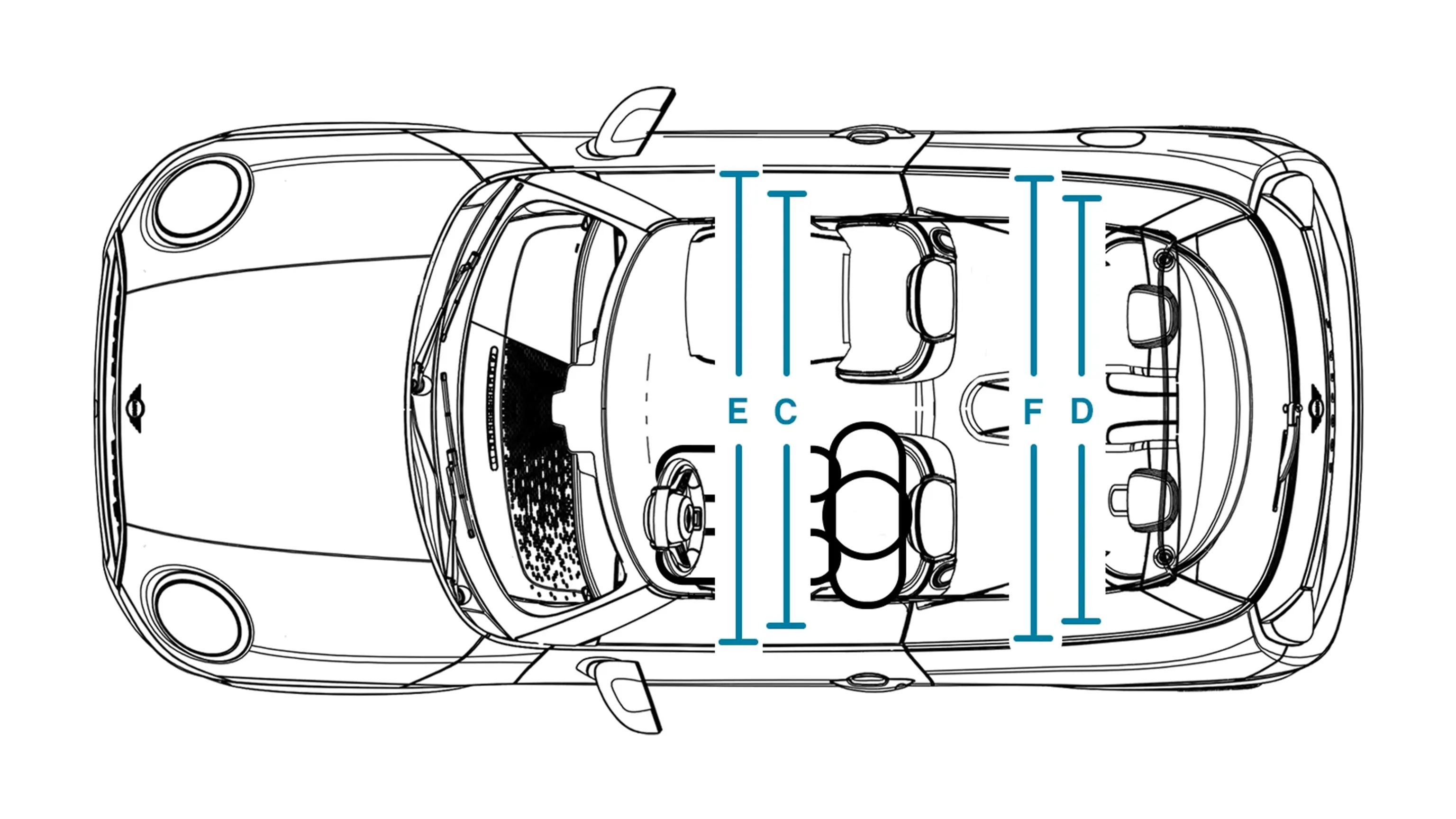 | (F) Prostor za komolce, zadaj | 1.265 mm |