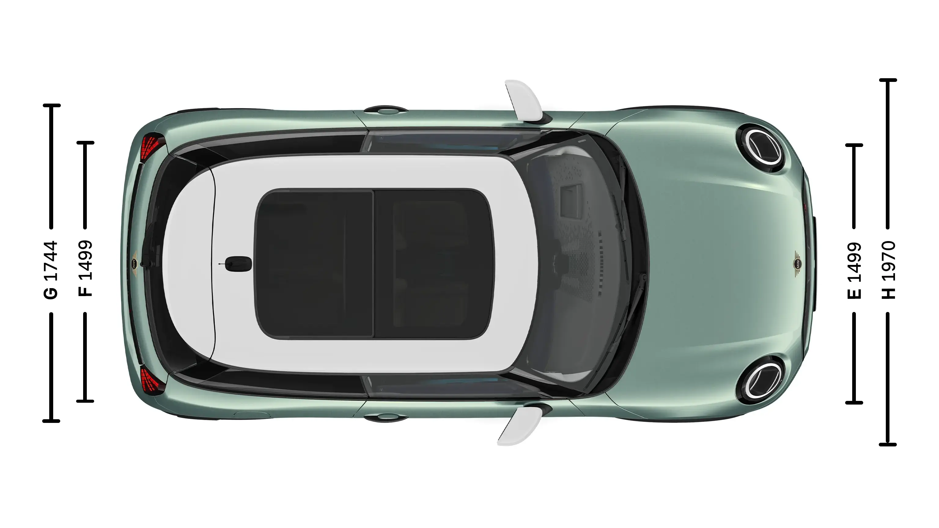 | (G) Prostor za glavo s panoramsko stekleno streho, spredaj | 973 mm |
