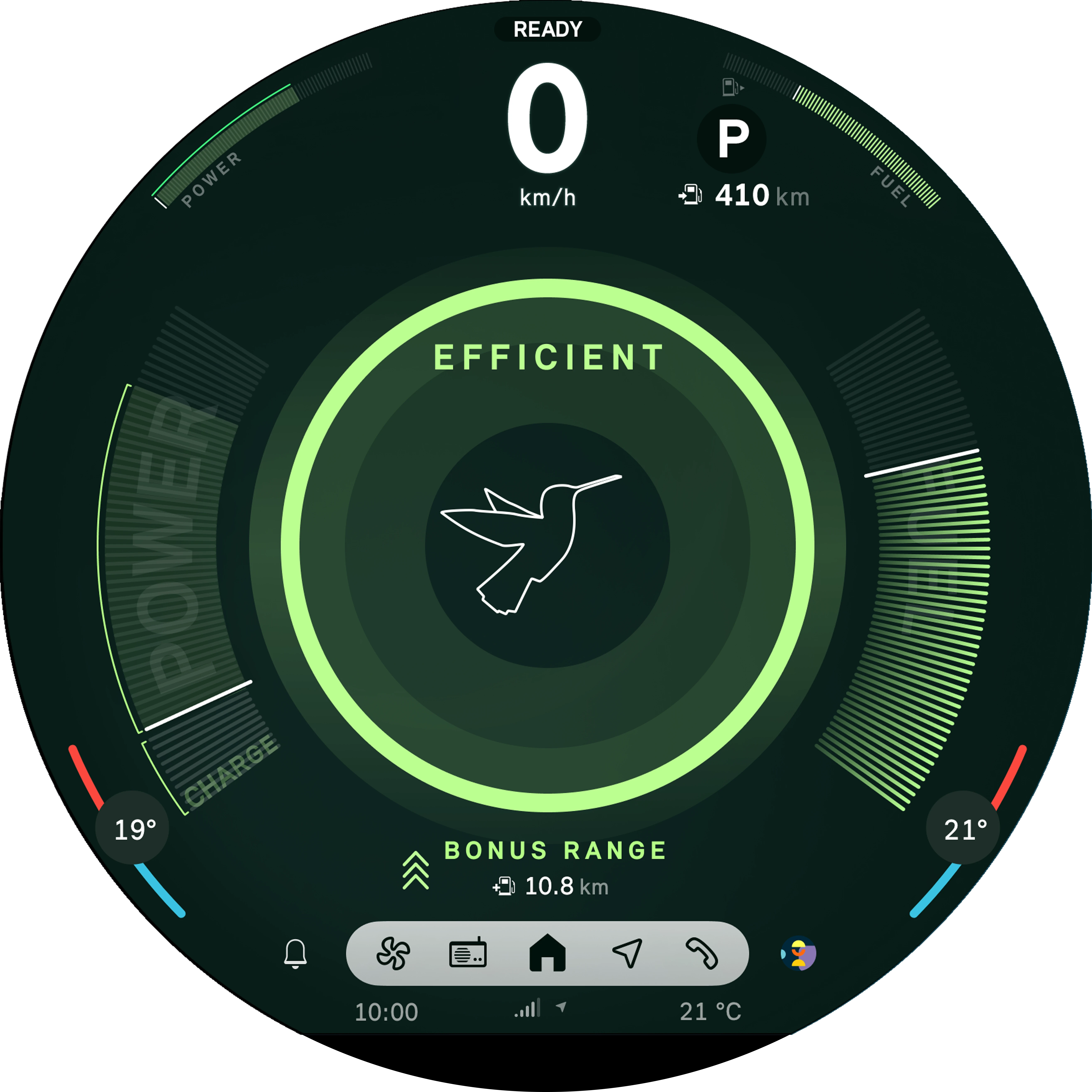 Način Efficient Mode podpira slog vožnje, ki zmanjšuje porabo in emisije. Pri tem se optimizirajo funkcije udobja, denimo moč klimatske naprave in upravljanje motorja. V uporabniškem vmesniku je pridobljeno povečanje dosega prikazano kot bonusni doseg.